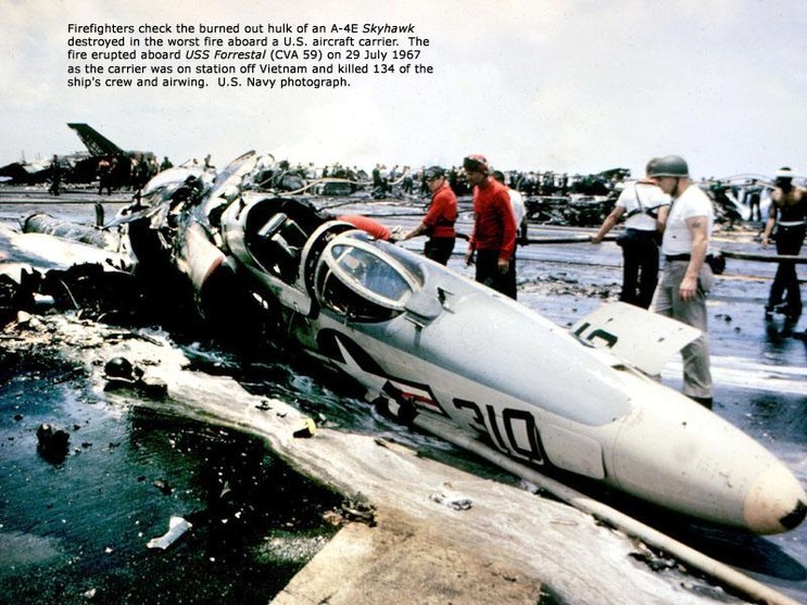1967년 6월 19일 작전 중인 미 항모 포레스탈(Forrestal) 호에서 대형 안전사고도 일어났다. 비행갑판에 로켓포 1발이 오발되어 승무원 134명이 순직하고 함재기 21대가 대파되었으며 선체는 7개월 동안 수리해야 했다.