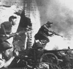 전장을 돌진하는 북베트남군 병사들, 구정공세 중의 한 컷이다. 전면적인 시가전이 남베트남의 거의 모든 도시에서 동시에 벌어졌다.