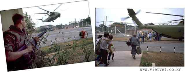 사이공 함락 직전, 미국 대사관 옥상을 통해 탈출하는 사람들