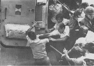 미국의 철수 인원에 포함되지 못하는 남베트남인들은 모든 수단을 총동원하여 해안으로 나가 거룻배를 이용하여 미군 함정이 있는 곳까지 도달하여 구조를 요청하였고 미군은 이들을 전부 받아주었다. 피난민을 가득 실은 배들이 계속 줄을 이었다.