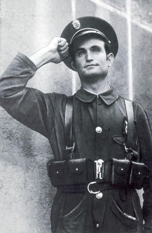 2차대전 이후 치안대의 모습. 삼각모에서 유래한 독특한 모자는 치안대의 상징이다.