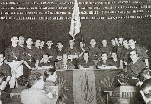 호세 안토니오 데 리베라(앞줄 가운데)와 그의 팔랑헤 동료들