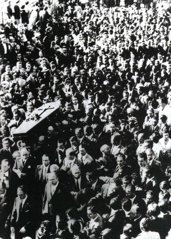 우파 지도자였던 호세 칼보 소텔로의 장례식. 좌우 대결이 폭력으로 분출되는 국면에서 소텔로는 1936년 7월 13일 좌파 쪽 젊은 장교들에게 암살당했고, 국민 진영은 이 사건을 쿠데타의 구실로 삼았다.