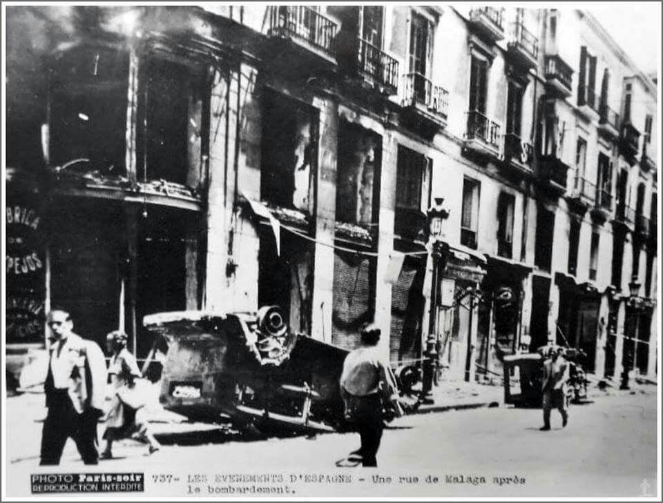 말라가 시에서는 노동자들이 강력한 세력을 이루고 있었지만 무기는 지니고 있지 못했다. 노동자들을 이끈 지도자들은 자신들이 유일하게 믿을 만하다고 생각한 정부 측 병력인 돌격대와 접촉했다. 7월 17일 오후 멜리야에서 반란이 일어났다는 소식이 들려오자 경솔한 젊은 장교 아구스틴 우엘린(Agustin Huelin) 대위가 부대원들을 이끌고 도시 중심가로 진출했다. 그들은 도중에 막강한 돌격대 병력과 충돌했고, 양측간에 교전이 벌어져 많은 병사들이 사망했다. 말라가의 고위 장교 팍스토트(paxtot) 장군은 즉각 군대를 움직이는 것 말고는 달리 방법이 없다고 판단했다. 수비대의 나머지 병사들은 거리로 행진해 나갔다. 그러나 그들의 지휘관은 마음을 바꾸어 그들을 병영으로 돌아가게 했다. 치안대를 책임지고 있던 대령은 이 조직으로서는 매우 특이하게도 반란을 지지한다고 선언하자마자 부하들에게 체포되었다. 이어 노동자들이 병영을 포위하고 건물 여러 채에 불을 지르자 수비대는 즉시 항복했다.