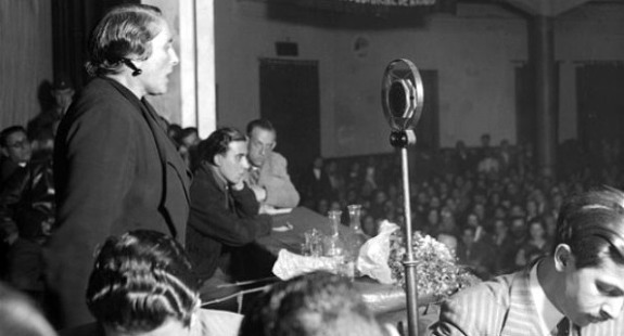 1936년 10월 4일, 저들은 결코 여기를 통과하지 못하리라(No Pasaran)라는 구호를 만들어낸 돌로레스 아바루리, 일명 '라 파시오나리아'가 연설을 하고 있다.