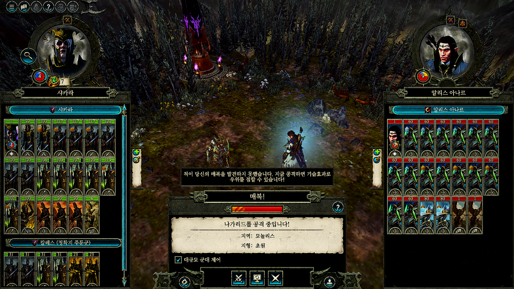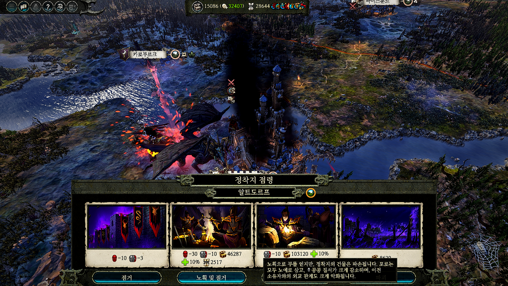 엘프3개국(샤페리.나가리드.크레이스) 와 신나게 싸우길래 내비두고 칼레도르와 티리온 세력만 집중적으로