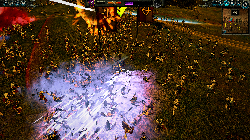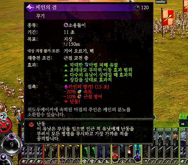 뭉쳐있는 전열.진형엔 여김없이 케인의분노와 악의의 시선이 날라와 제국군을 도륙하기 시작했고..