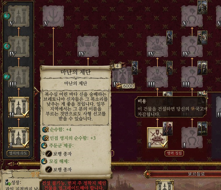 그러고보니 보르들로 세력보너스도 좋구나. 기사모집턴 감소에 +2에 교역보너스까지.