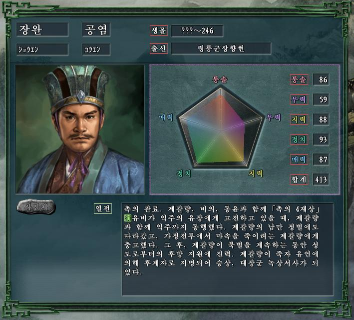 하지만 정사에서는 없는 내용으로 제갈량의 후계자는 장완이라고 봐야 한다.