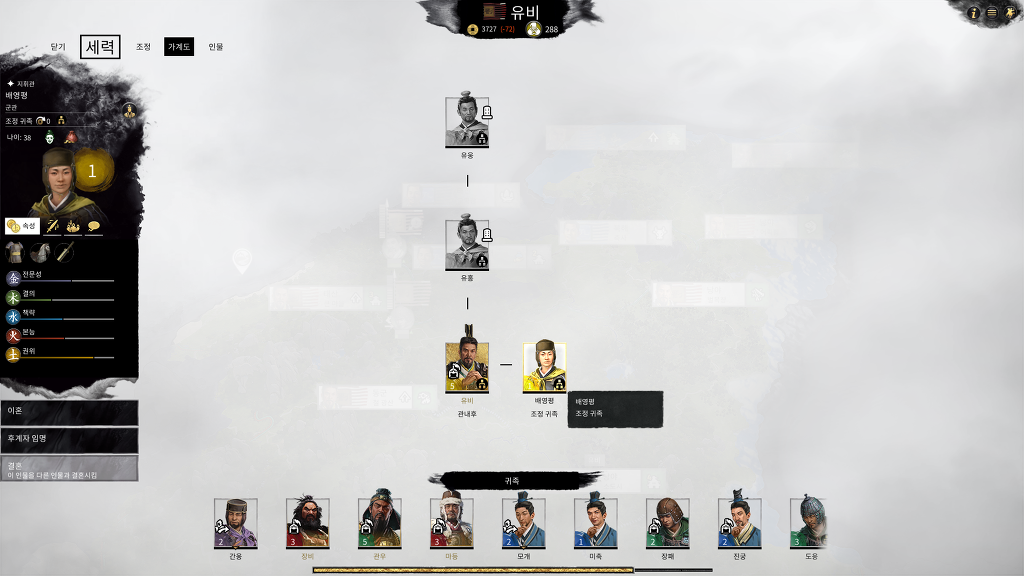 또 상성을 잘 살펴야 하는데, 상성이 좋지 못하면 후계자 등록시 휘하 장수들이 불만을 보입니다. ㅋㅋㅋ