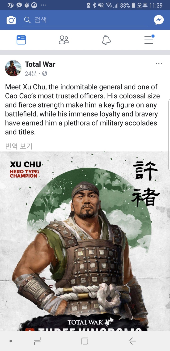 작성자Red eye 작성시간 18.07.14 "불굴의 장군이자 조조의 가장 신뢰할 만한 장수들 중 하나인 허저를 만나보세요. 거구와 맹렬한 힘으로 전장에서 핵심인이 되었고 동시에 엄청난 충성도와 용맹함은 그에게 수많은 영예와 작위를 안겨주었습니다."