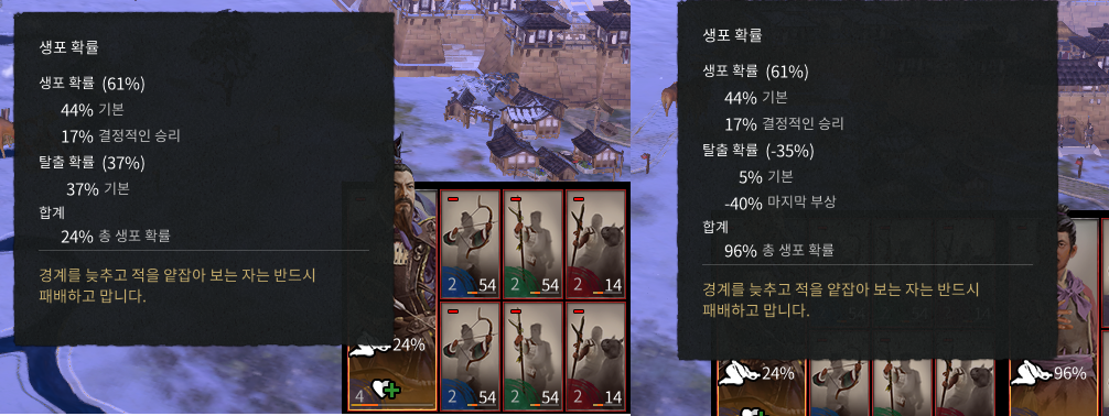 즉 상대의 잔존 병력이 남아 있어야 한다는 거죠.