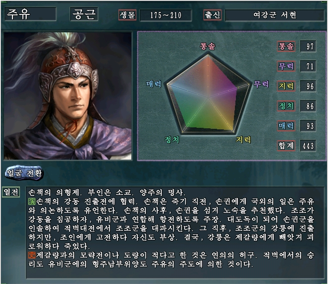 매력을 제외하고 모든 능력치가 80을 넘는 장수