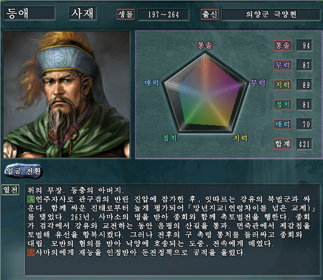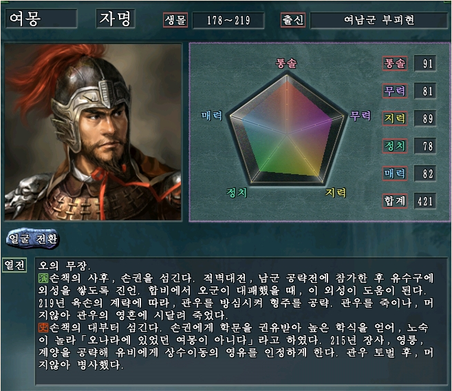 특기 반계가 아쉽지만 그래도 좋은 장수이다.