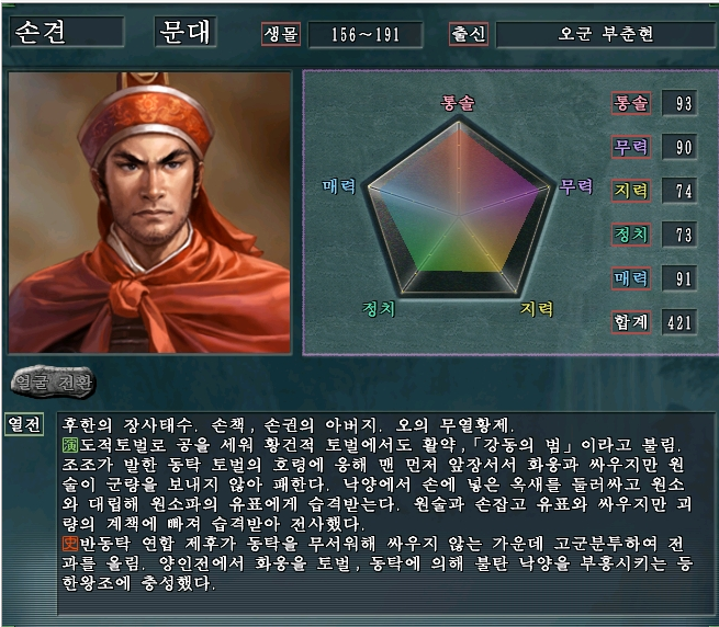 본인 자체 능력도 너무 좋은데 손견이나 손책처럼