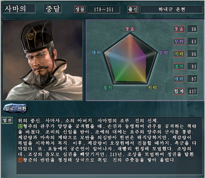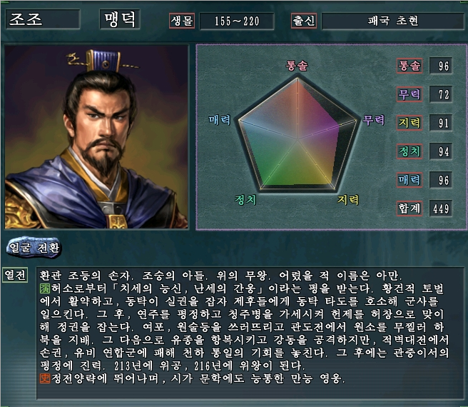 정치를 제외한 모든 능력치가 80을 넘는다.