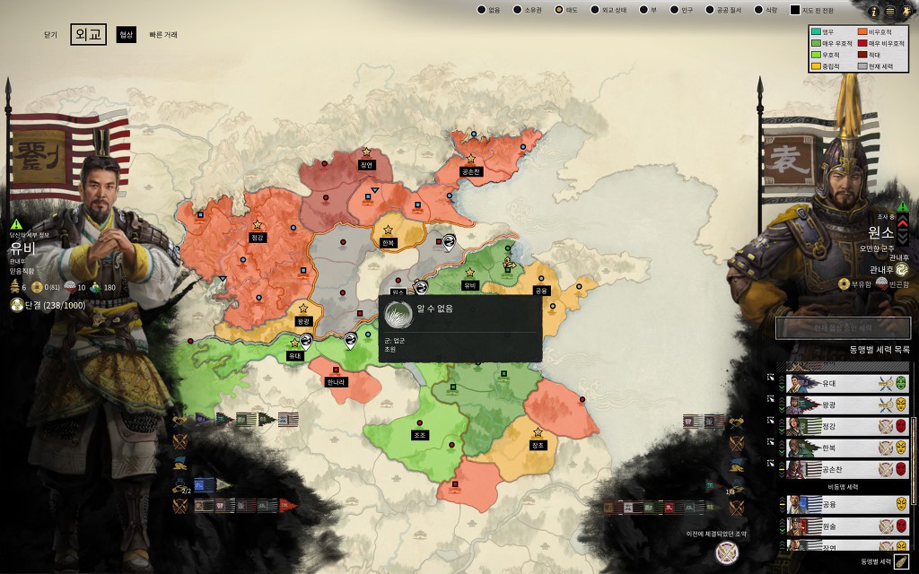 이 때 주요세력이 유비, 공손찬, 정강연합 vs 여포, 한수연합(마등, 유장을 속국으로 둠) vs 손견(채모, 황조, 유장을 속국으로 둠)이었는데 원소덕분에 여포, 손견 세력과 죄다 전쟁이 되버렸습니다. ㅡㅡ