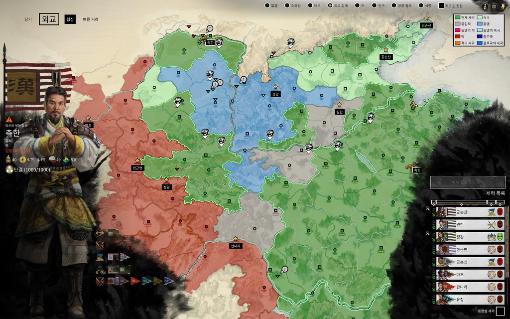 원한은 원소 세력입니다. 속국에서 풀어줬더니만 제 속국상태일때 다른 세력과 전쟁중이어서 남쪽으로 진출하더군요.