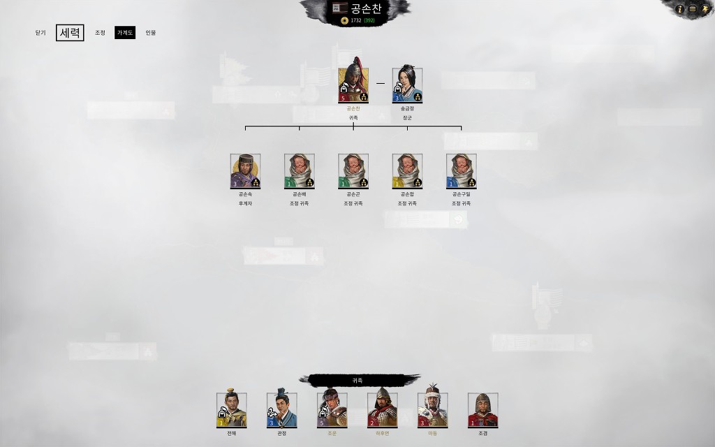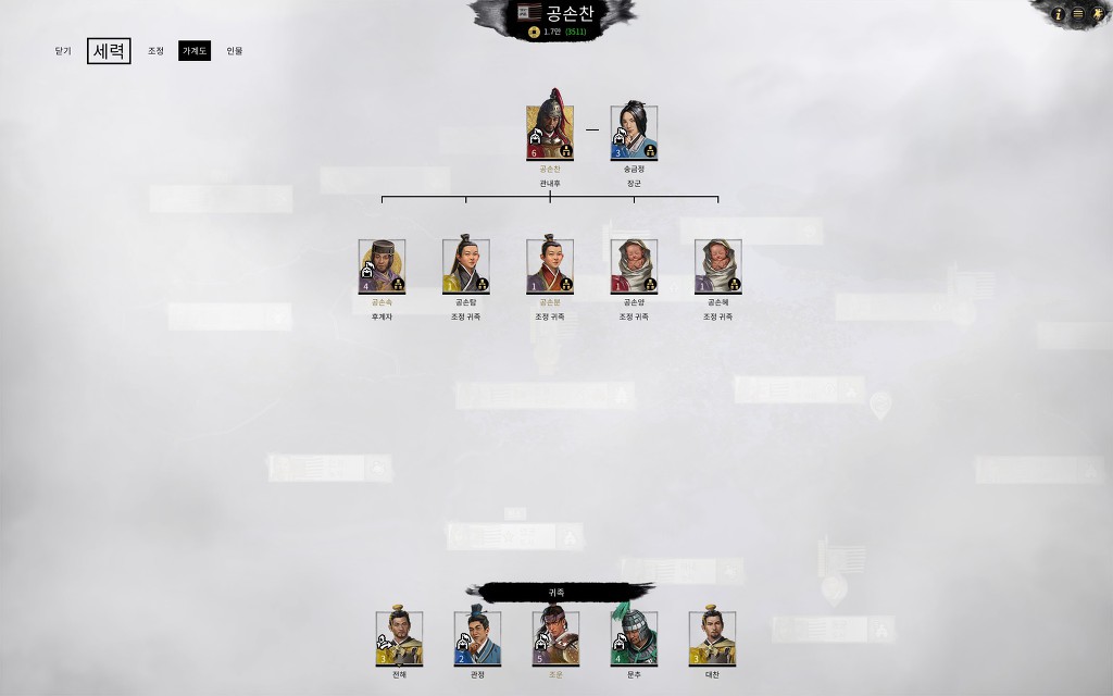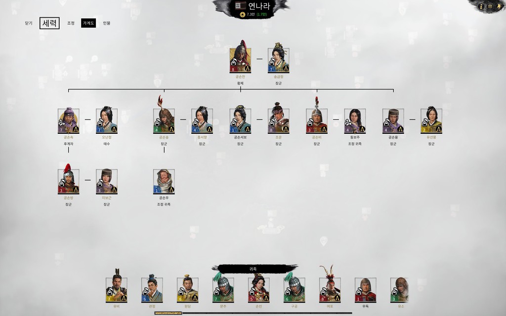 전설난이도 진행 도중 원소때문에 망한 36턴 공손찬의 가계도.