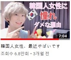 최근 몇달간은 90% 혐한콘텐츠 만 업로드