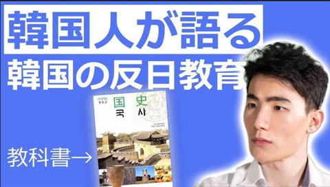 한국의 역사교과서는 반일감정을 유발하는 편협하고 왜곡 된 역사 책 이고 한국인들은 어렸을때 학교 역사시간부터 반일교육을 받았기 때문에 일본을 싫어하는거라고