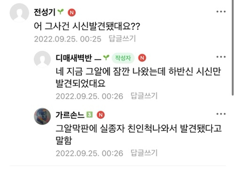 작성자페트리어트 작성시간 22.09.26 ㄷㄷㄷ 근데 굳이 하반신을 발견되도록 한 이유가 있나..? 장기매매 등 범죄 결과물을 치울거면 깔끔하게 치우지 흔적을 남긴다라