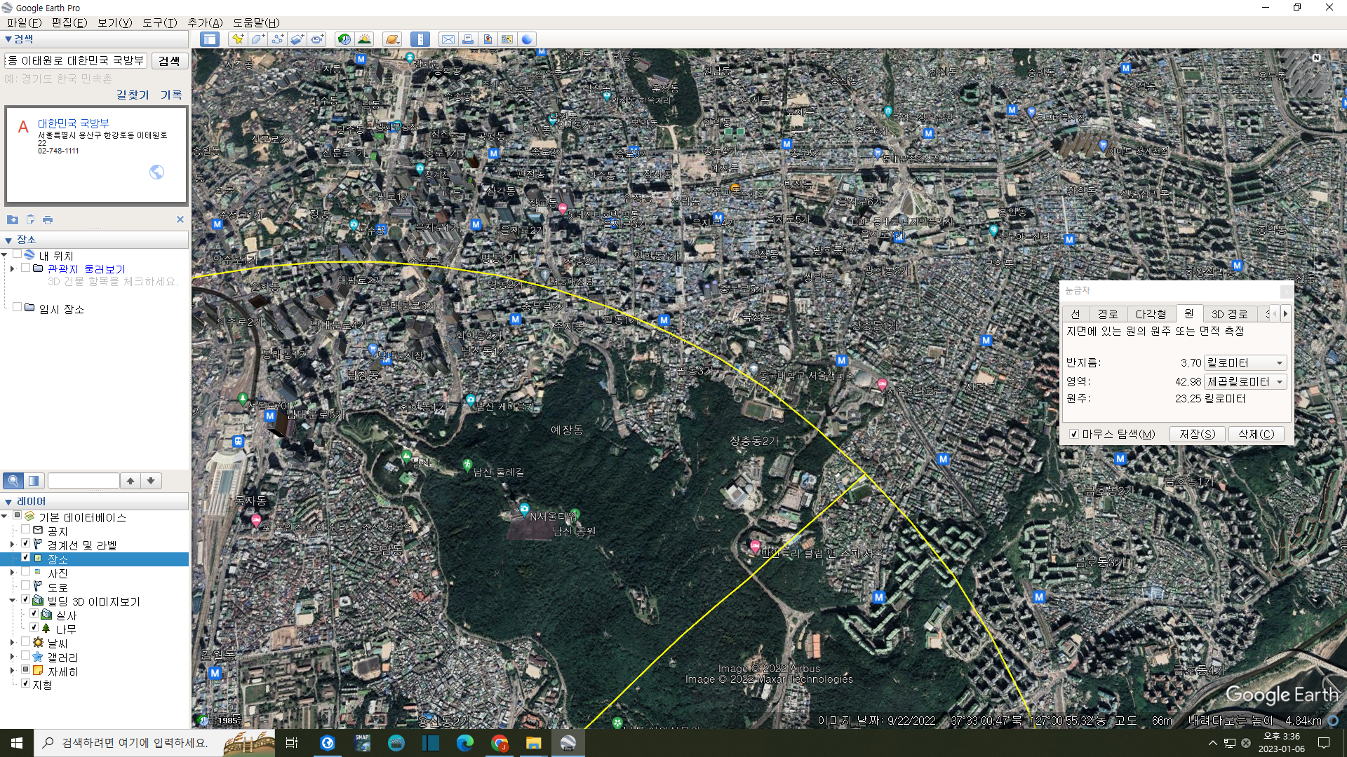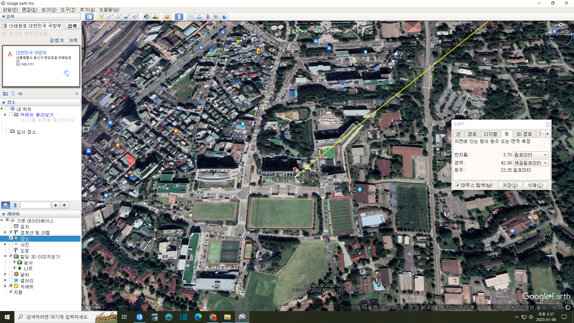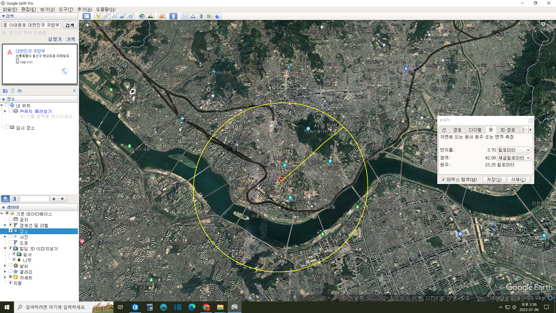 문제의 3.7km 반경의 대통령실 비행금지구역.