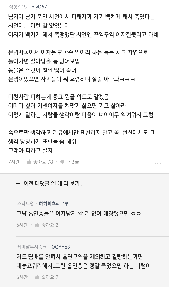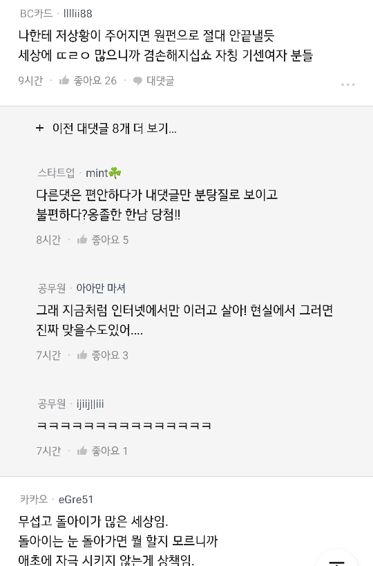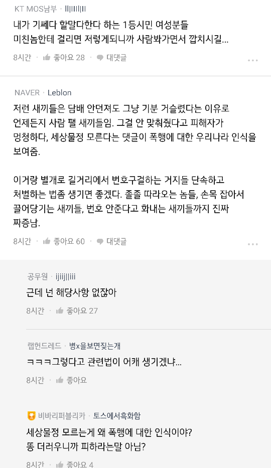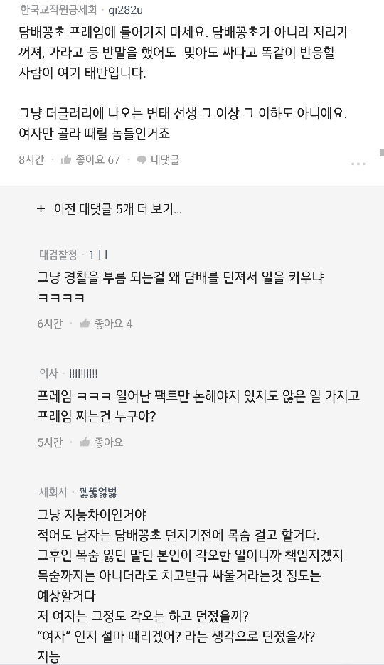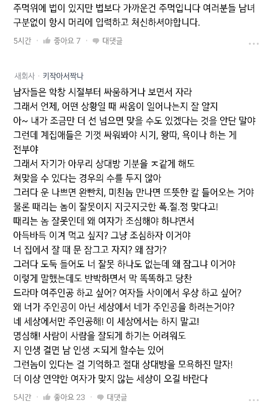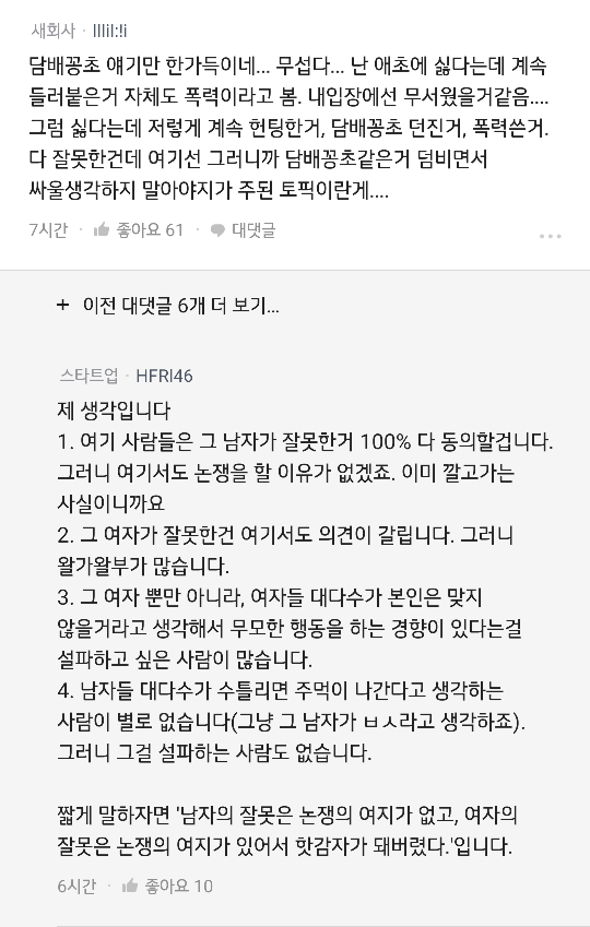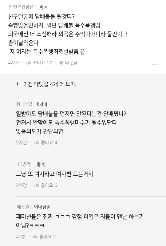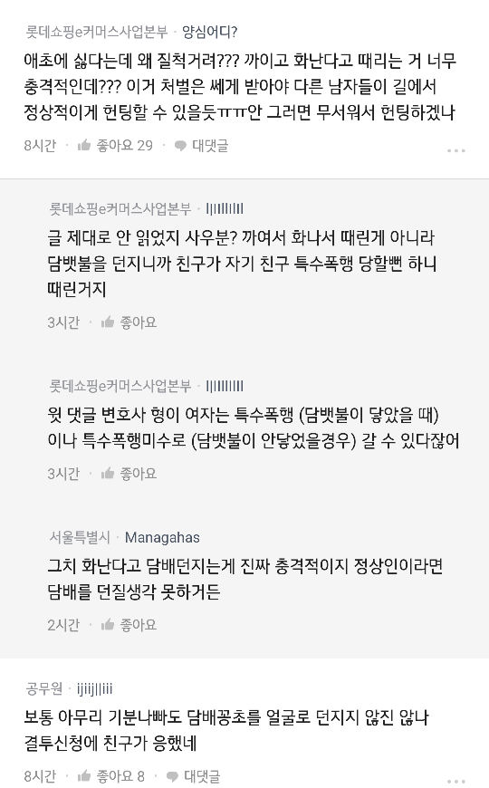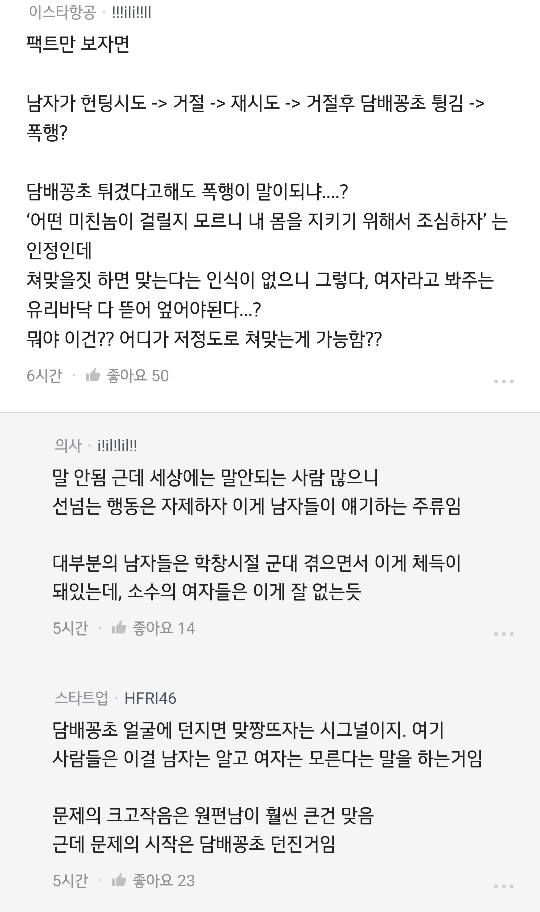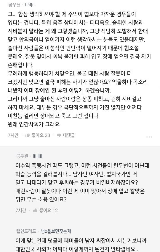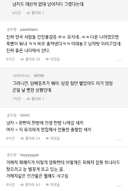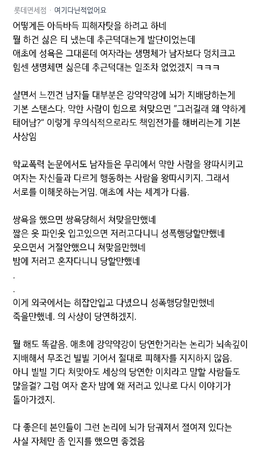 2. 댓글을 보니 덜멍청한 놈들은 피장파장으로 몰고가고, 멍청한 놈들은 여자 잘못이라고하는데
