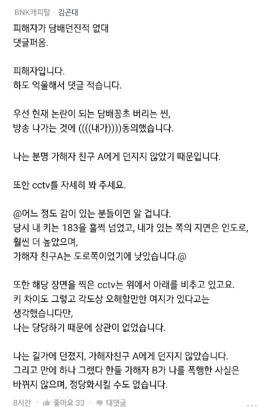 작성자구경하는사람24 작성시간 23.05.24 1.영상 분석해본 결과 담배 꽁초 안맞음.