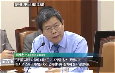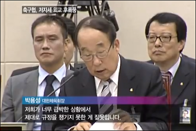 ▲ 국회에서 축구협회와 대한체육회에 질의하고 있는 민주통합당 최재천 의원 출처:국회 영상회의록