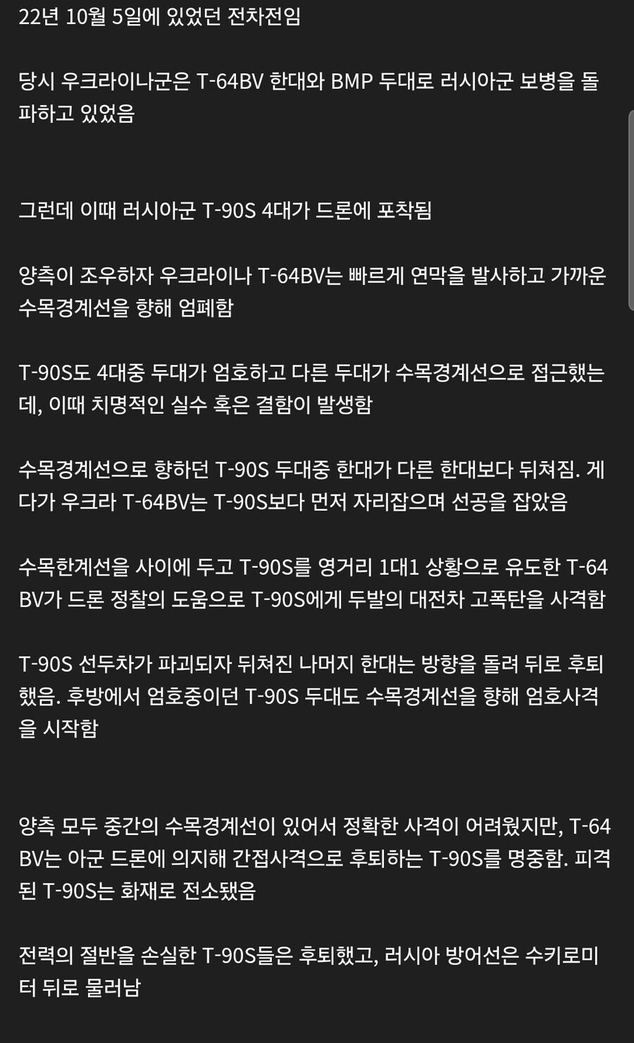 물론 저 T-64도 말이 T-64지 엄청 뜯어 고친 거고 하고, 현대전에서 드론의 중요성을 다시 한번 증명한 사례이기도 합니다.