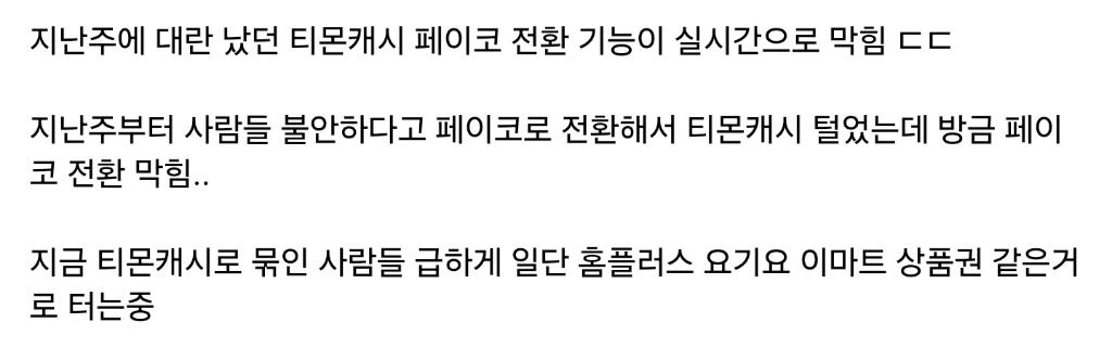[스크랩] 큐텐 정산 지연 사태 ) 실시간 심각한 티몬 근황 ㄷㄷㄷㄷ 작성자가터벨트후작|작성시간24.07.23|조회수255 목록 댓글 2 글자크기 작게가 글자크기 크게가 펨코 펌 다음검색 스크랩 원문 : 도탁스 (DOTAX) 현재 게시글 추가 기능 열기 북마크 신고 센터로 신고 댓글 댓글 2 댓글쓰기 답글쓰기 댓글 리스트 작성자Dirus | 작성시간 24.07.23 이거 파산?아니면 지주회사에서 입금해주나? 작성자BERSERK_JUSHIN | 작성시간 24.07.23 지인은 지금 티몬 통해 예약한 호텔이 일방적으로 취소하고 환불은 티몬한테 받으라 했답니다. 자기넨 돈 못받았다구요. 하지만 티몬은 연락단절........ 댓글 전체보기