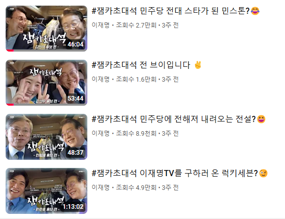 이 전 대표는 나중에 김 의원과 다시 만나 자신의 유튜브 채널 코너인 '잼카 초대석'을 진행했는데, 여기에서도 해당 발언이 '경선 개입'을 위해 기획된 게 아니었음이 확인된다. 김 의원은 이 전 대표의 차량에 오르자마자 다음과 같은 말을 주고받았고 서로 크게 폭소를 터뜨렸다.