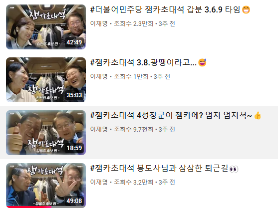 그 밖에도 이 전 대표는 정 전 의원이 이명박 정부 시절 수감돼 있을 때 면회를 갔던 기억과 출소 직후 부인 김혜경 씨와 함께 정 전 의원을 만나 밥을 샀던 일, 정 전 의원이 생활이 어려웠던 시절 성남시장으로서 공무원 대상 특강 연사로 초빙했던 일화 등도 나눴다. 방송을 마치며 이 전 대표는 "화이팅"이라고 했고 정 전 의원이 자신의 기호가 3번이라고 말하자 손가락 세 개를 카메라 앞에 펼쳐 보이며 "3번"이라고 응원하기도 했다. 김민석 의원이 나왔던 방송이 '경선 개입'이라면 정 전 의원 방송도 다를 게 없다는 얘기다.
