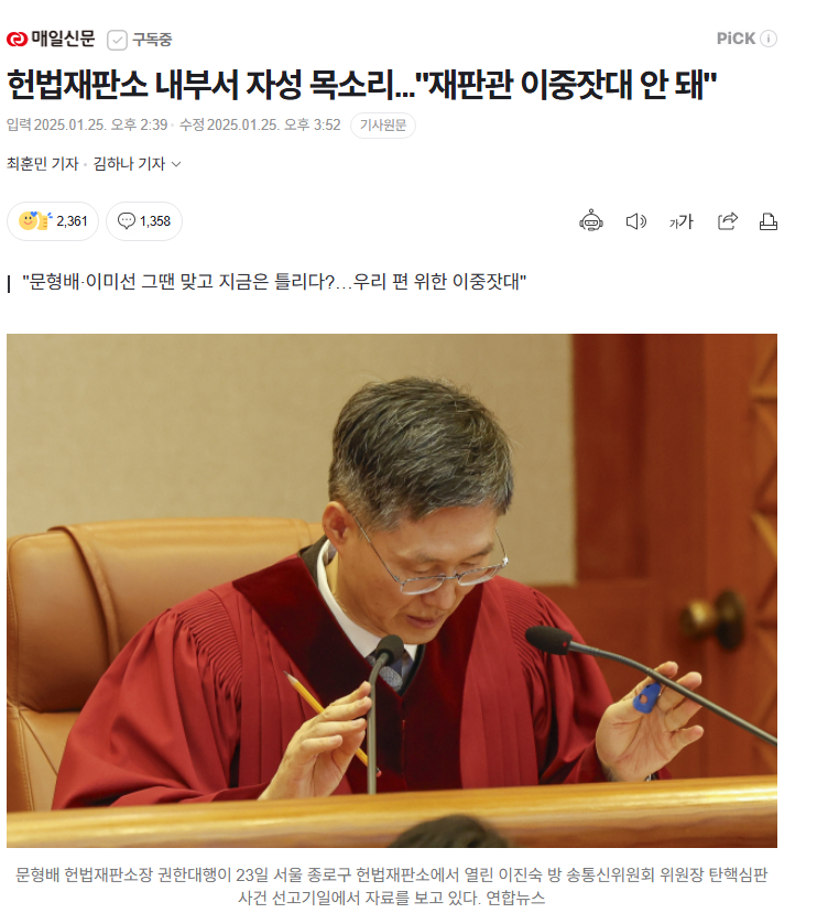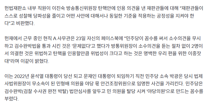 헌재가 입법부내부의 일에 대해선 심각한거 아닌이상 사법소극주의적 태도를 취한것과