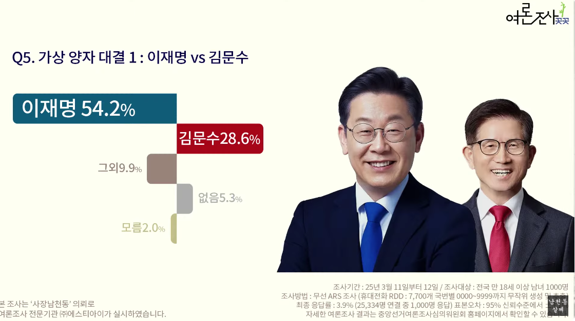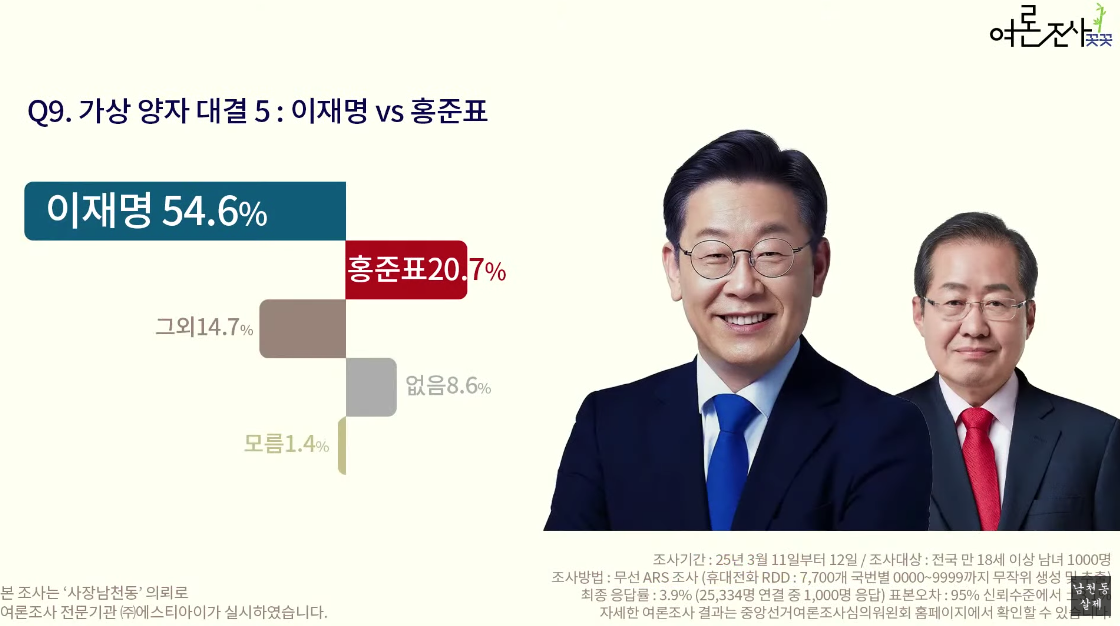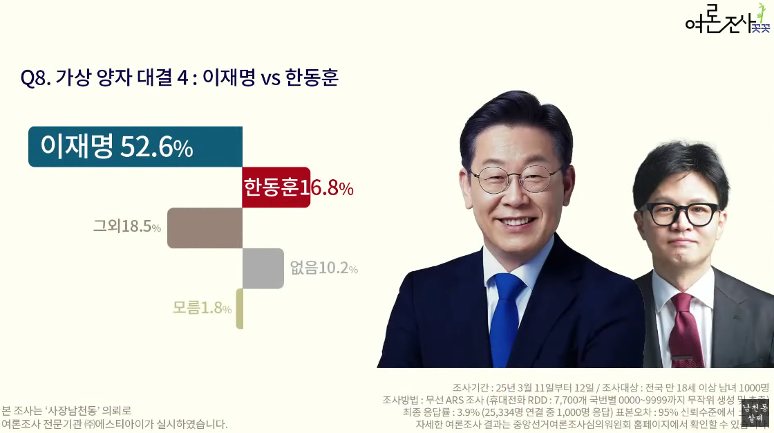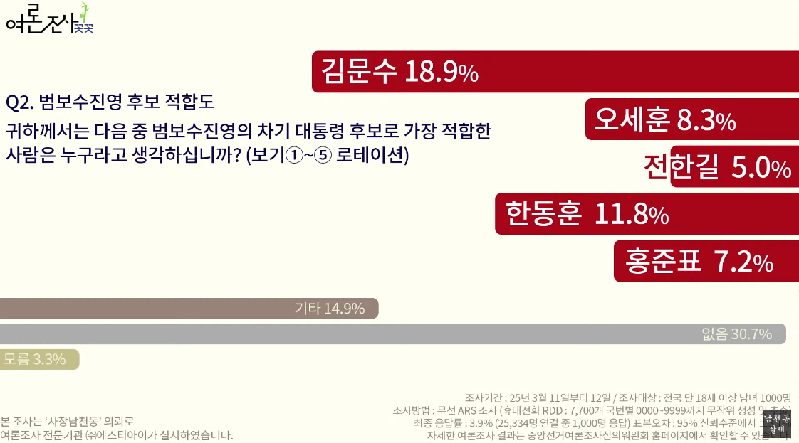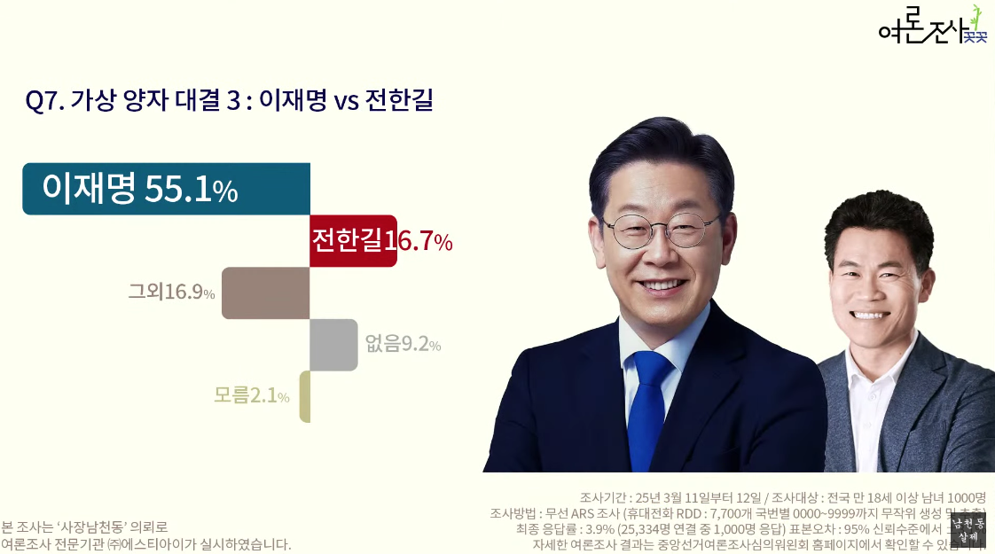 전한길이 포함된 첫 여조이며 5%가 나왔다. 1등은 30.7% '없음'