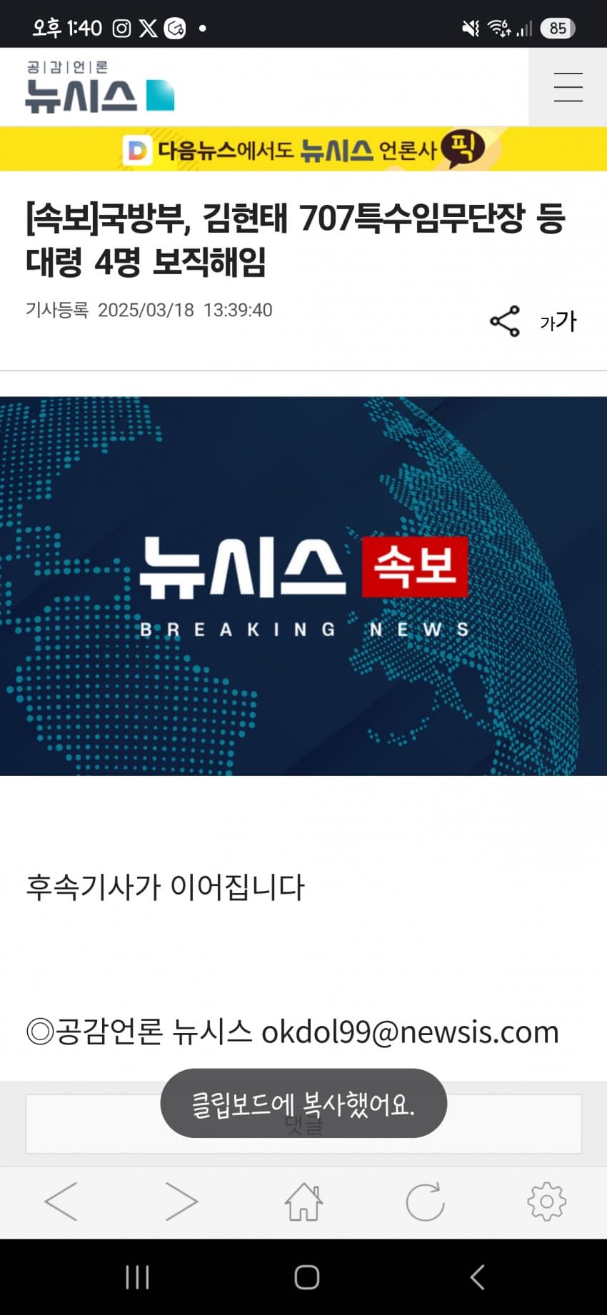 [스크랩] [속보]국방부, 김현태 707특수임무단장 등 대령 4명 보직해임 작성자가터벨트후작|작성시간25.03.18|조회수238 목록 댓글 2 글자크기 작게가 글자크기 크게가 https://mobile.newsis.com/view/NISX20250318_0003103108[속보]국방부, 김현태 707특수임무단장 등 대령 4명 보직해임후속기사가 이어집니다mobile.newsis.com 다음검색 스크랩 원문 : 이종격투기 현재 게시글 추가 기능 열기 북마크 신고 센터로 신고 댓글 댓글 2 댓글쓰기 답글쓰기 댓글 리스트 작성자나욱 | 작성시간 25.03.18 이제? 답댓글 작성자황초롱이 | 작성시간 25.03.19 222 댓글 전체보기
