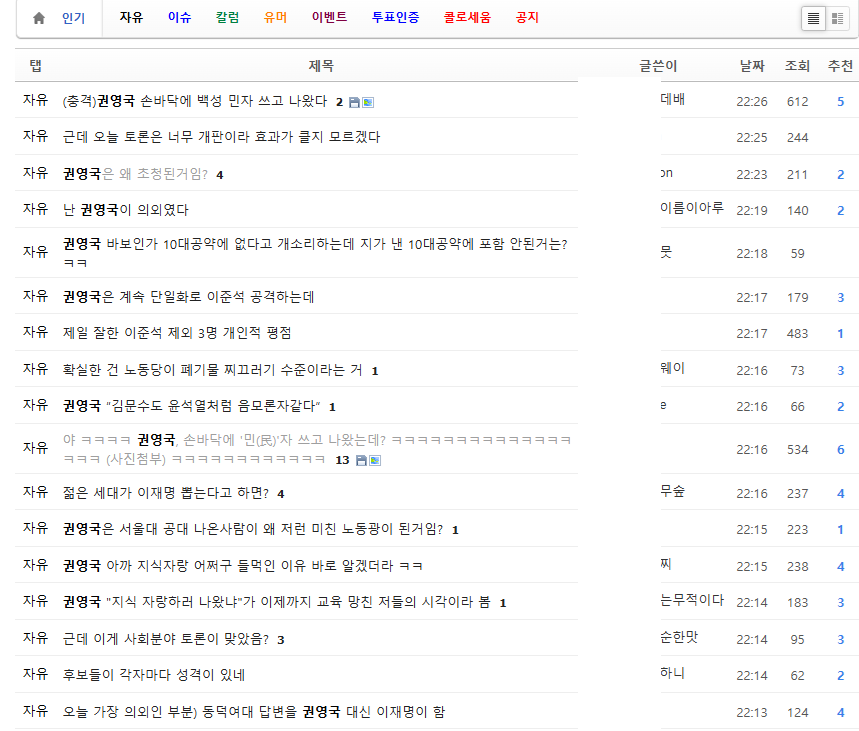이재명이 김문수 상대하고 권잉글랜드행님이 이준석 패는 구도가 제일 좋은 것 같음. 종대성님.. 마지막 차에도 똑같은 전략 부탁~