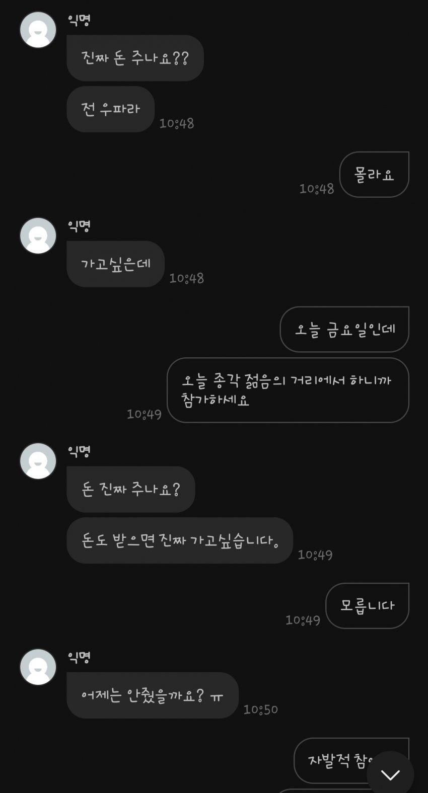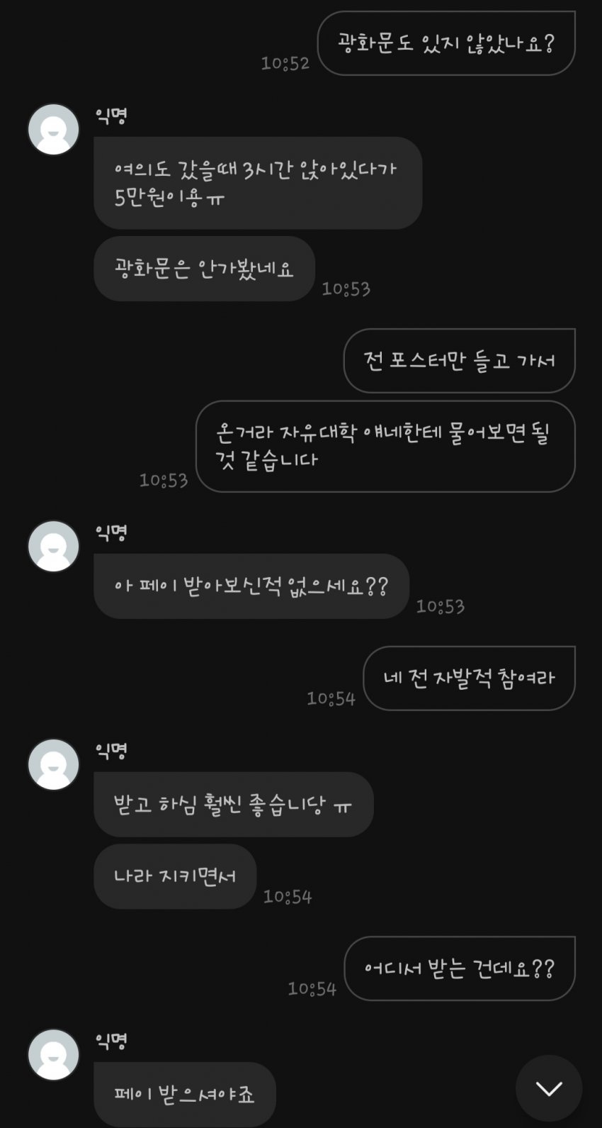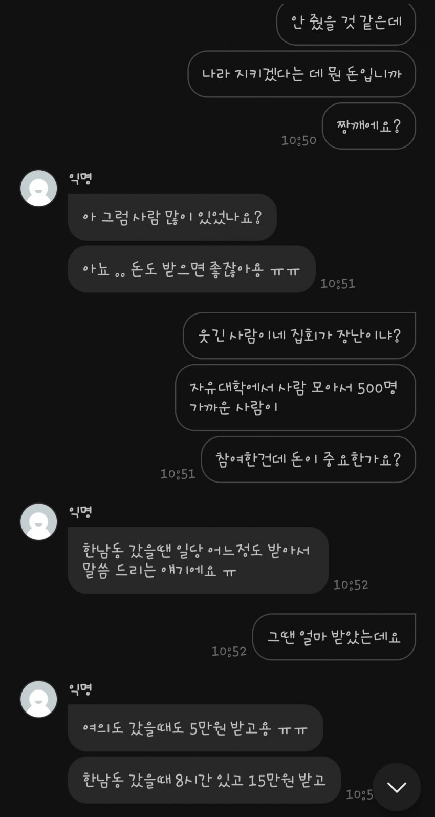 중정갤 펌)에타 내란견하고 쪽지했었는데 ㅋㅋㅋㅋ 작성자松永久秀|작성시간25.05.30|조회수349 목록 댓글 4 글자크기 작게가 글자크기 크게가 집회에서 돈받고 참여하는 일 많다고 술술 불고있네요 다음검색 현재 게시글 추가 기능 열기 북마크 신고 센터로 신고 댓글 댓글 4 댓글쓰기 답글쓰기 댓글 리스트 작성자눈사람no.3 | 작성시간 25.05.30 개돼지 새끼들... 작성자Krieg | 작성시간 25.05.30 보수에서 돈 주고 시위, 집회 동원하는 건 다 알고 있고 오래된 사실인데 법에 걸리는 게 없는 건지 제대로 건드려진 게 없죠. 작성자田무장굴비 | 작성시간 25.05.31 에타라니 대학생들도 저런 알바를 하나보군요 작성자황초롱이 | 작성시간 25.05.31 댓글 전체보기