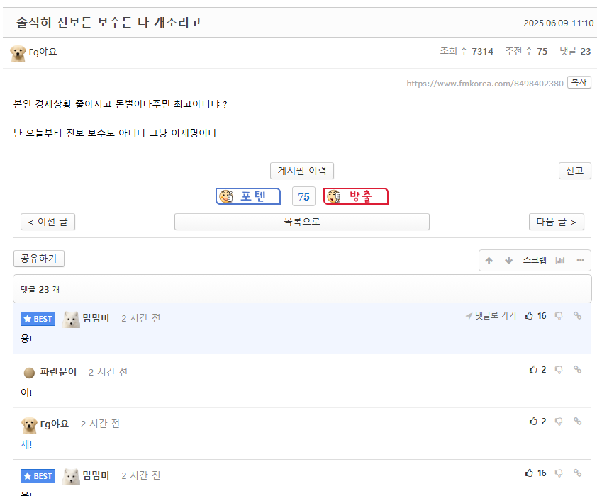 이야 쥐박이 칭찬이 펨코에서 비추를 먹다니