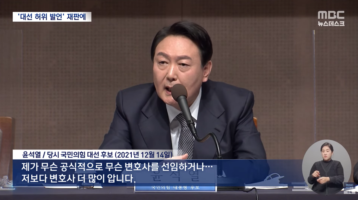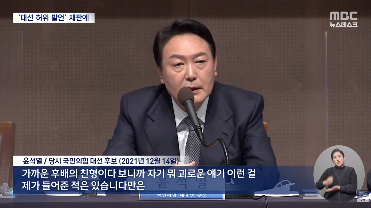 혐의: 윤 피고인이 후배 검사의 친형인 윤우진 전 세무서장이 뇌물 혐의로 수사받을 당시 변호사를 선임해 주지 않았다고 말한 발언이 거짓이라는 판단입니다.