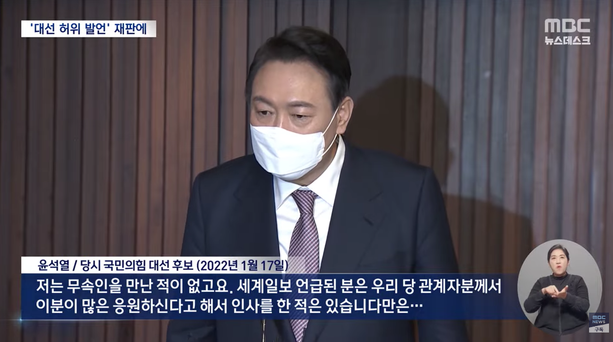 혐의: 윤석열 피고인이 2022년 대선 전, 건진법사(전성배 씨)를 만난 적이 없고 배우자 김건희 씨와 함께 만난 적도 없다고 부인한 발언이 거짓이라는 판단입니다.
