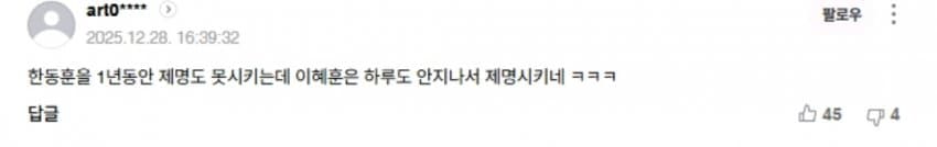 일각에선 야당이 뭉치게 도와준다느니 이럴바엔 전한길을 국무총리로 임명하라느니 불바다던데 아주