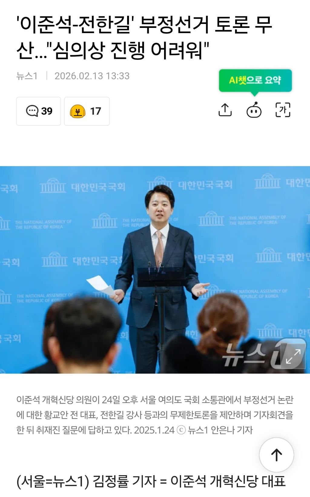 작성자Krieg 작성시간 26.02.13 이준석은 그냥 어그로 끄는 게 버릇이라 어그로 끄는 것 뿐입니다.