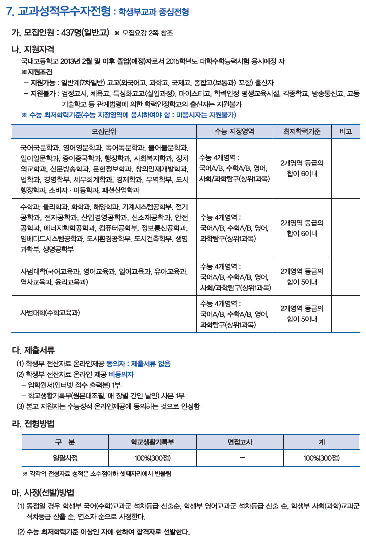 2015학년도 인천대학교 수시 모집전형 및 등급