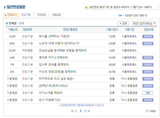 서울메트로9호선 기출 면접질문과 후기·족보, 전형방식 등 실전 자료를 정리하고 통계화한 정보군요.