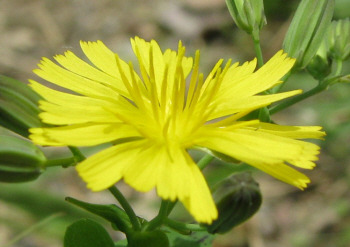 흰색꽃이 피지만 흰씀바귀보다 꽃잎이 23-24개로 더 많다. 줄기가 곧게 서서 선씀바귀라 부른다.