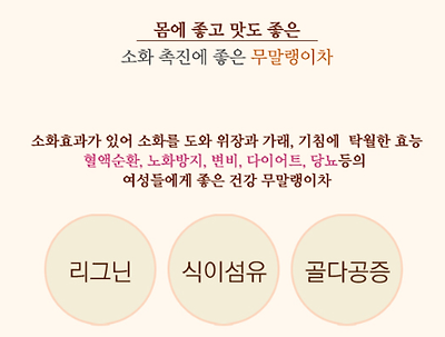해독 작용이 있는 소화효소를 함유한 무와 항산화작용, 콜레스테롤과 혈압, 혈당치의 상승을 억제하는 작용이 있는 카테킨이 풍부한 녹차가루를 조합한 것으로