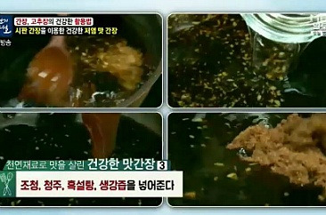 전통적인 방법으로 성형제조 메주를 소금물에 침지하여 일정기간의 발효, 숙성과정을 거친 후 그 여액을 가공하여 제조한 것 |