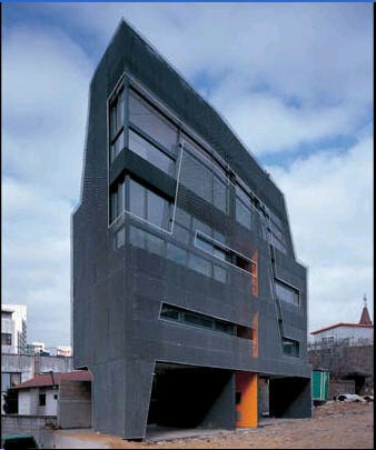 위치: 서울시 마포구 서교동 358-18, 20번지 대지면적: 461.60㎡ 지역지구: 일반주거지역 건축면적: 270.07㎡ 연면적: 1706.91㎡ 건폐율: 59% 용적률: 299% 규모: 지하 1층/ 지상7층 주차대수: 13대(지상5대/지하8대) 용도: 근린생활시설, 사진관, 주택 구조: 철근콘크리트 외부마감: 송판노출콘크리트, 헴록위오일스테인, 징크판거멀접기, 익스팬디드메탈(아연도금) 내부마감: 압출성형시멘트패널, c-black 버너구이, 헴록위오일스테인, 익스팬디드메탈(아연도금) 설계기간: 2003. 3. - 2004. 9. 공사기간: 2003. 10. - 2004. 11. 건축주: 강영호 설계: 문훈건축발전소+건축사사무소D.N 기본설계: 문훈 실시설계: 문훈, 김숙희 모형제작: 승연, 영진 구조: 은구조(동근욱) 시공: 이용흠 목수외 3형제/ 우송종합건설㈜ 감리: 문훈 에디터: 강권정예 편집디자인:노선선 사진: 이기환 번역: 문봉주